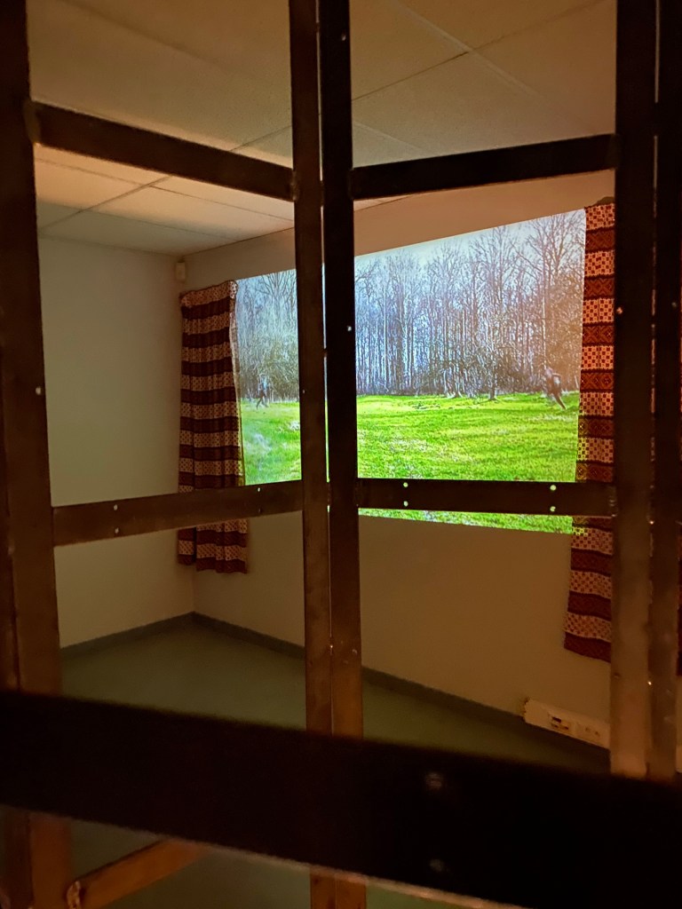 Het werk combineert video, geluid en fysieke objecten om een reflectieve en soms ongemakkelijke ruimte te creëren waarin bezoekers de grenzen van hun eigen perceptie kunnen ervaren.